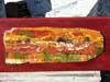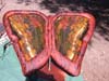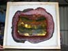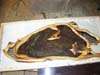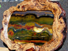These carved timber frames used to mount the stone are mostly made from one piece of natural timber. Wood is collected from all over Australia to select a variety of colours and patterns. The timber is dried for at least 2 years before use. Some pieces are collected from areas that were felled for timber 100 years ago and have been lying in creeks or inaccessible places since then.